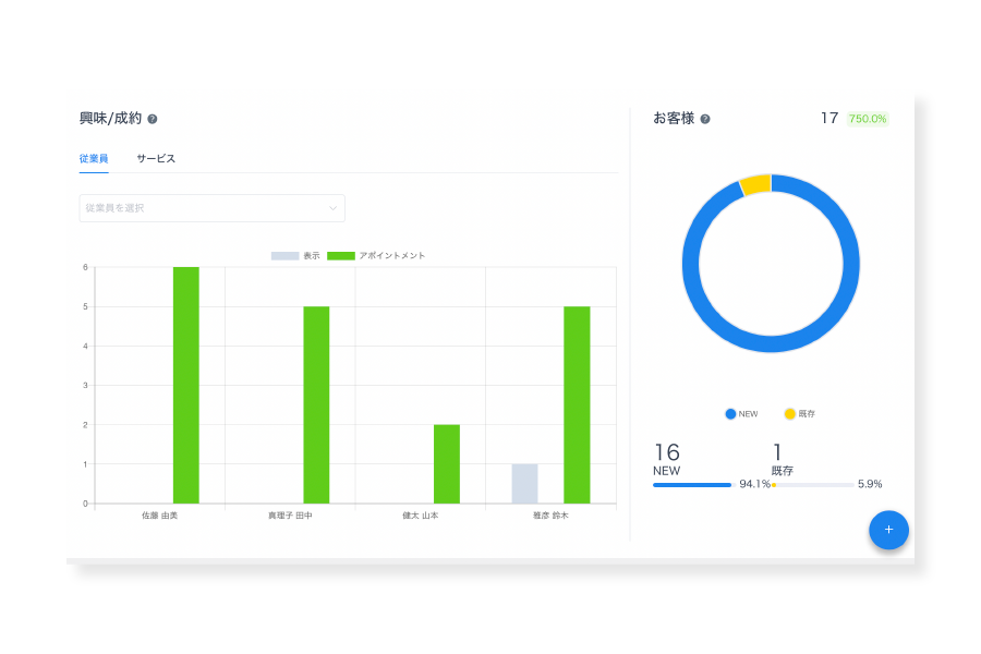 詳細レポートとエクスポート機能を備え、売り上げ管理やCRM機能で顧客情報を蓄積。社内共有が可能で、顧客管理を強化します。