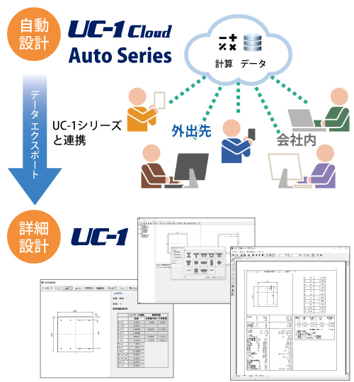 UC-1 Cloud RC断面計算は、インターネット環境があればどこでも利用可能。PC、タブレット、スマートフォンで使用でき、ユーザアカウント毎に環境が用意され、異なる端末でも同様の設定やサービスが利用できます。