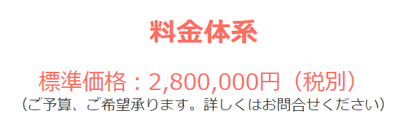標準価格:2,800,000円(税別)(ご予算、ご希望に応じて調整可能)
