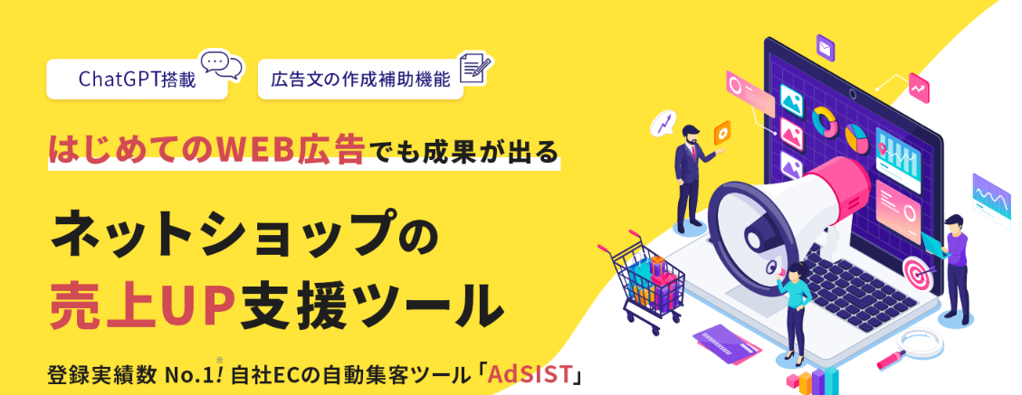 AdSISTは「誰でも簡単にネットショップに集客できる」 をコンセプトに、最低限の操作で成果を最大化できる特長を持っております。
