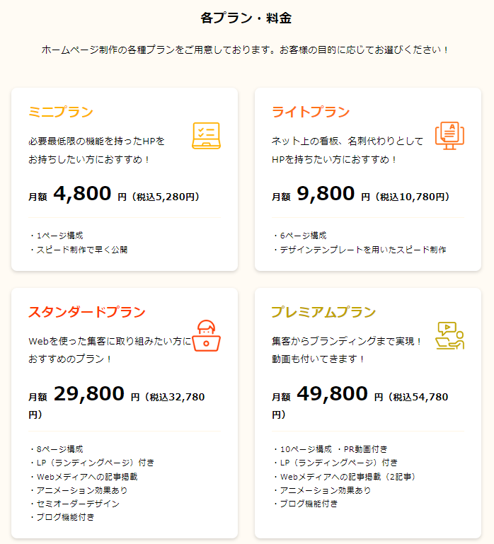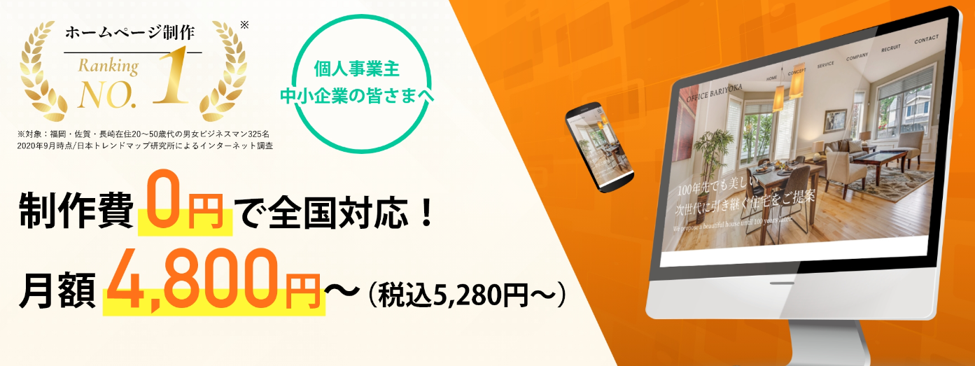 制作費無料!月額5,280円〜ホームページを持つことができる個人事業主・中小企業向けのサービス