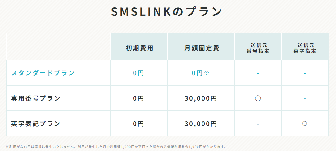 初期費用・月額料金は0円。通数料金は送った分の到達課金のみ。