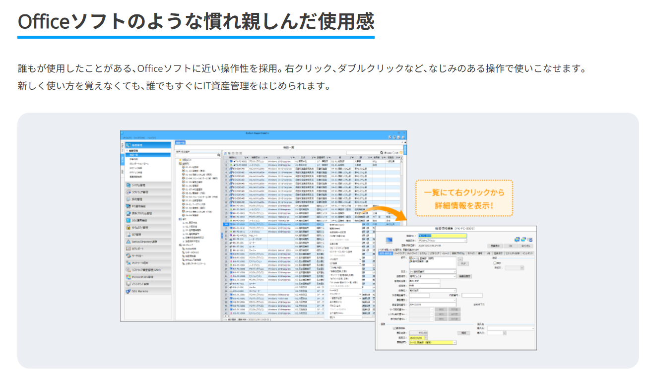 SS1は、充実のIT資産管理がおこなえる基本機能と、お客様の環境に合わせてお選びいただける各種オプション機能を多数搭載しています。無駄なく、効率よく、日々の管理をおこなっていただけます。