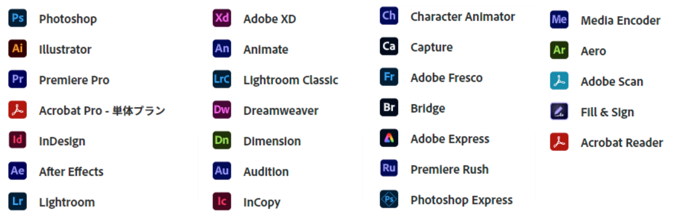 Adobe Creative Cloudは、Photoshop、Illustrator、Premiere Pro、Acrobatなどの定番クリエイティブツールを含む20以上のアプリを提供します。サブスクリプション形式で、常に最新版のツールが利用可能です。新しいインフラやデバイスへの対応、環境の変化にも柔軟に対応し、クリエイターの負担を軽減し、モチベーション向上にも繋がります。20,000以上のフォントが使えるAdobe Fontsなどのサービスも充実しています。
