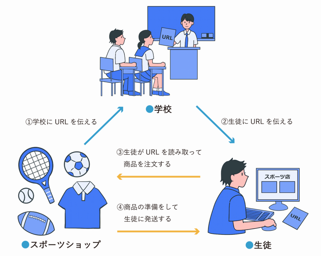 サクオーダーは、スポーツショップの業務を効率化するシステムで、学校の生徒からの注文から集計までを便利に行うことができます。