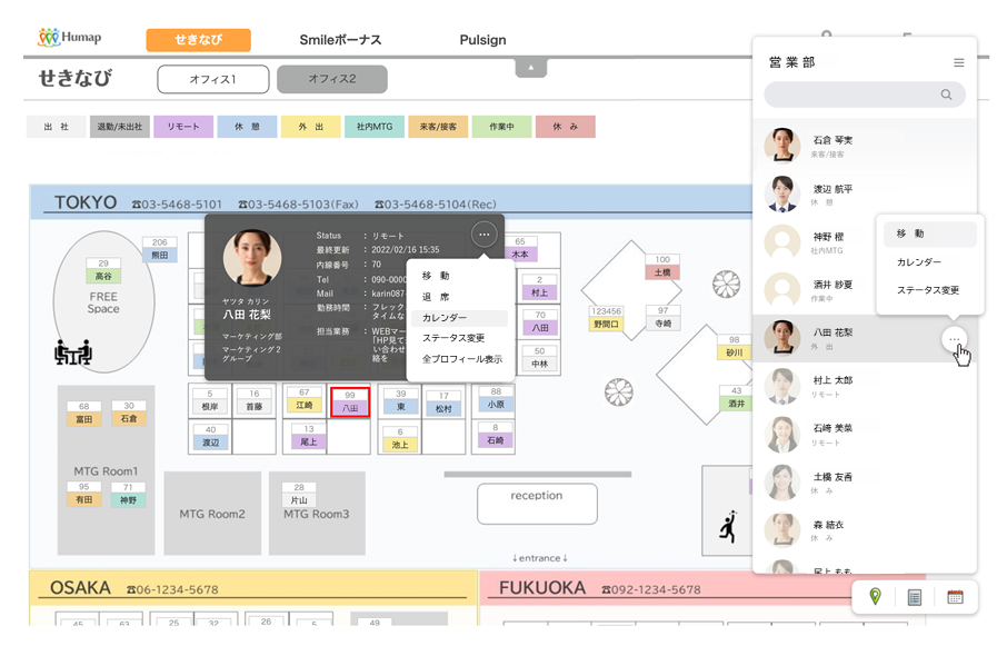 「せきなび」は、誰が、どこで、何をしているかひと目でわかる、オンライン座席管理ツールです。