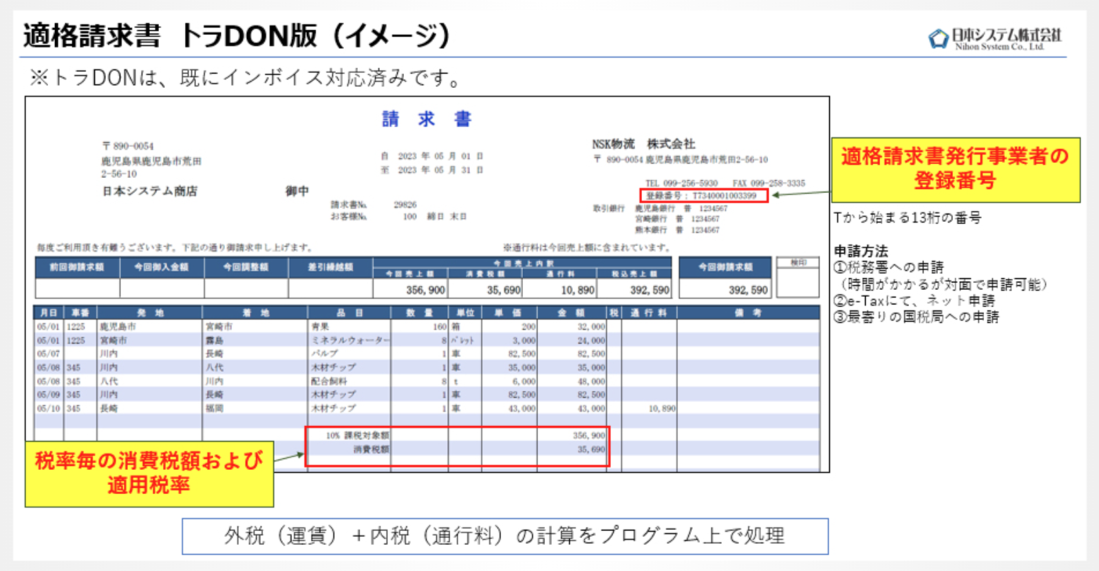 トラDONは運送業専用の事務処理ソフトで、運転日報の入力から売上明細印刷、請求書発行、車両経費管理、傭車管理、乗務員手当などの管理が可能です。インボイス制度にも対応し、未確定運賃の一括編集や発地の一括入力、レシートの経費入力サポートなど、細かな状態管理を提供します。データ分析ツールが標準で搭載されており、経営分析に役立つ情報を提供します。