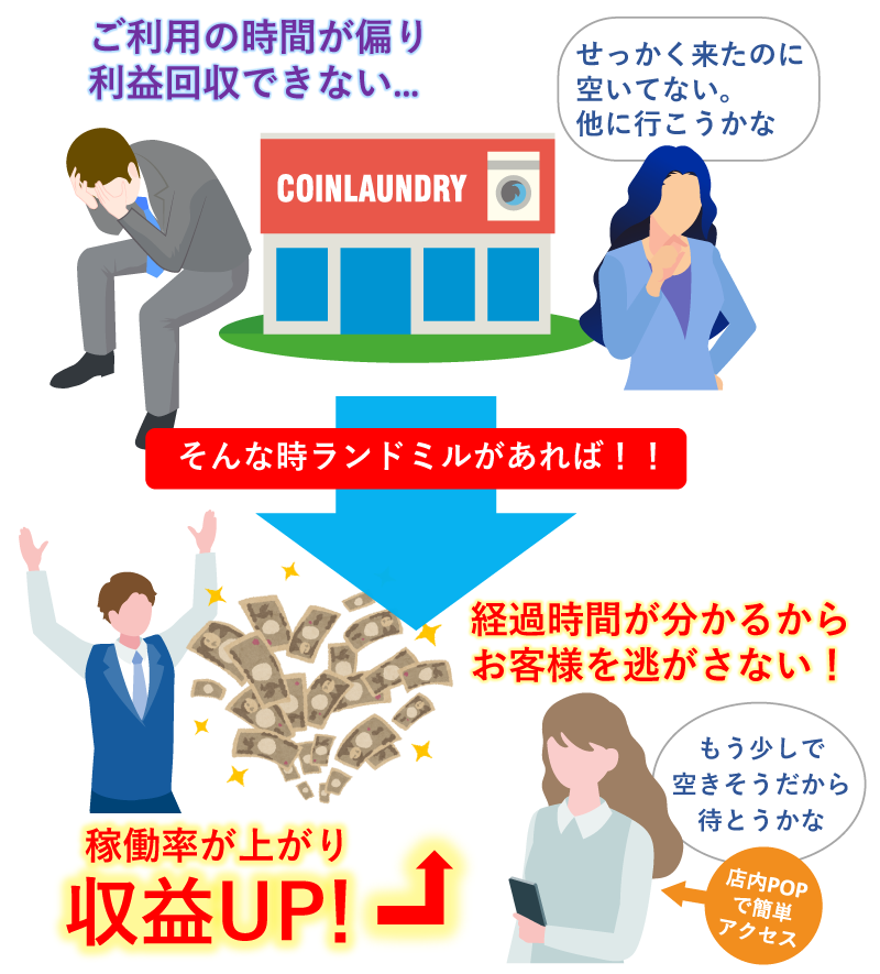 ランドリーの利用経過時間が見えるのでお客様を逃がさない!
