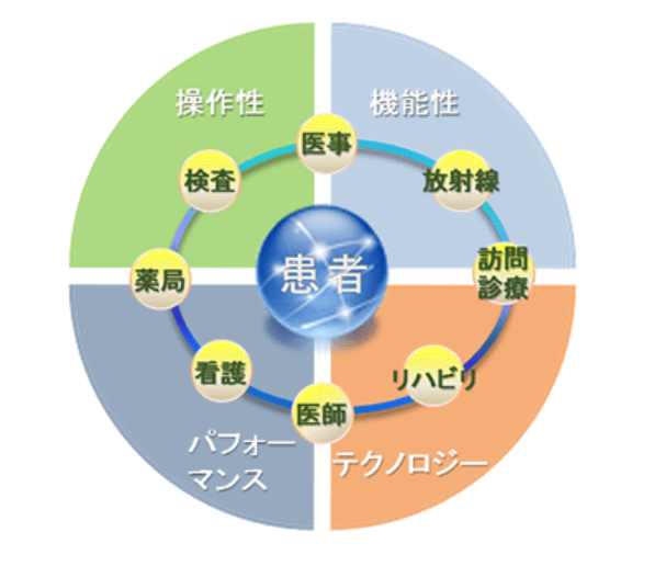 総合診療記録機能により、医師診療録だけでなく、看護記録や服薬指導記録、作業療法記録など院内の部門記録を時系列に並べて表示し、各部門で共有することが可能です。指示切れ管理機能により、医師が出した指示の終了予定を通知します。