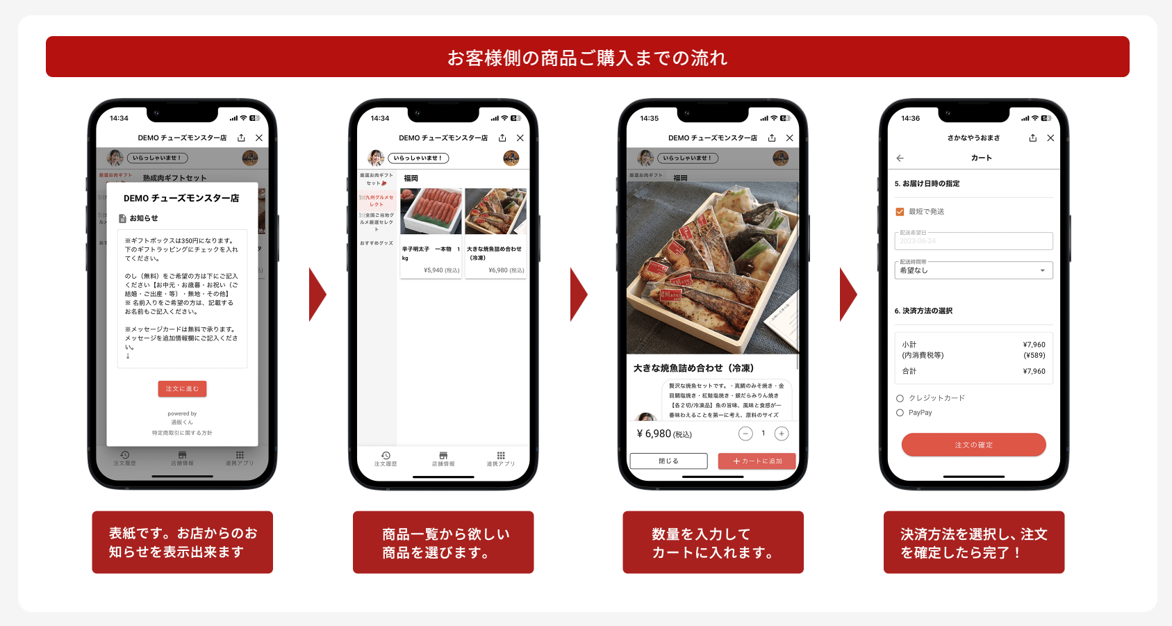 通販くんを利用することで、顧客はLINEアプリ一つで気軽に商品を注文できます。店舗側はLINE公式アカウントを通じて商品の販売が可能になり、顧客とのコミュニケーションも深められます。煩わしい手続き不要で、スムーズな販売プロセスを実現します。