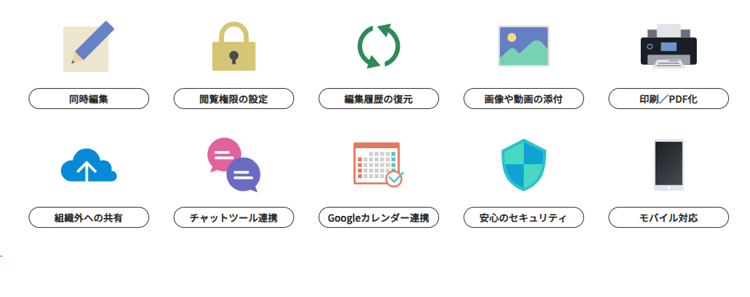 Word感覚で使えるから、初心者でも簡単に更新可能!さらに充実サポートで情報をアップデートし続ける習慣が組織に定着します。ノート数無制限のフリープランで気軽にはじめられます。情報共有に必要な機能を安心価格で1ヶ月から利用可能です。