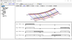 「床版打設時の計算」は、鋼橋における床版コンクリートのブロック割り、打設順序および打設間隔の計画検討を支援するプログラムです。平成29年道路橋示方書・同解説に対応し、部分係数法による照査が新たに導入されました。このシステムは、断面がI桁と箱桁の2種類に対応し、若材齢時におけるヤング係数の考慮やジャッキアップ・ダウンの考慮が可能です。架設ステップ毎の解析結果確認や報告書形式の出力帳票も提供し、打設区間や養生期間の最適化を図ることができます。