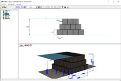 耐候性大型土のうの設計計算 Ver.3は、耐候性大型土のうを用いた積層工法の設計計算プログラムです。従来の土のうよりも強さ特性および耐候性に優れる素材で製造された袋材を使用し、施工性に優れるために短期間に施工・撤去等を必要とする道路、河川等への仮設構造物や災害復旧工事等に採用されます。このプログラムは、「耐候性大型土のう積層工法 設計・施工マニュアル」に準拠し、内的安定(袋体の耐力照査)、外的安定(滑動、転倒、支持力)、全体安定(円弧すべり)、危険水位の算出、安全勾配の算出などの照査を行います。マニュアルに記載されている標準断面図集の各断面図条件のセット機能も備えています。