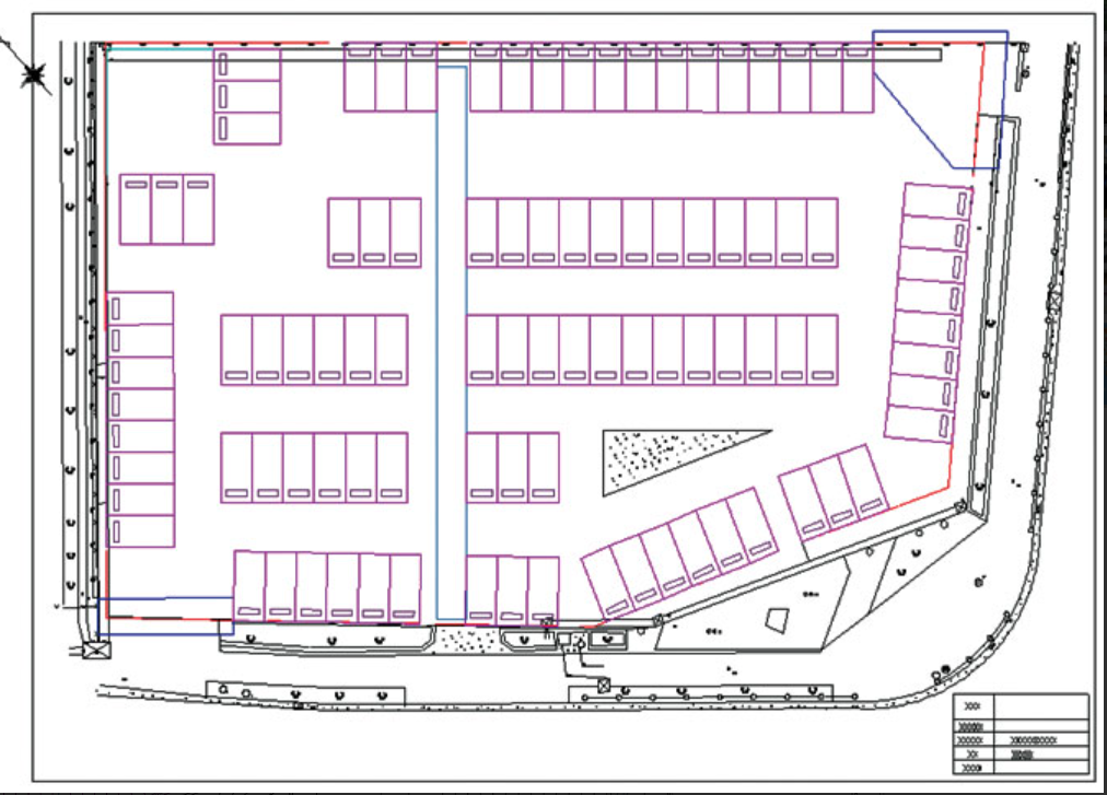 2次元汎用CADの基本的な作図コマンドにより、簡単に駐車場区画の作図が行えます。既存の現況図の読込み機能も備えています。