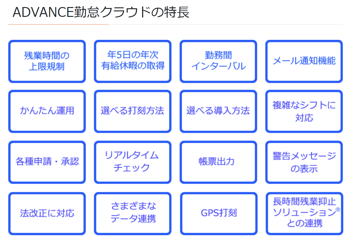 日々の出勤・退勤打刻だけでなく、シフト管理、各種申請・承認、残業管理、休暇残管理、勤務実績集計・チェック、給与システムとの連携などの充実した機能を備えた勤怠管理システムです。打刻から集計までの一連の作業を電子化することで、業務効率の改善、人為的ミスの防止を可能にします。また、電子化することで得た勤怠データは、労働環境の分析や適切な労務管理に活用することができます。