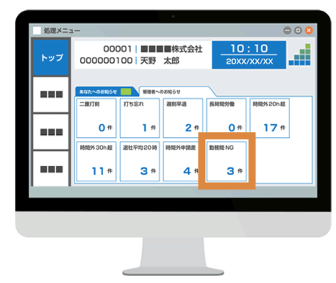 充分な勤務間インターバルを取得できていない人をすぐに確認し、適正な勤務間インターバルを従業員へお知らせします。