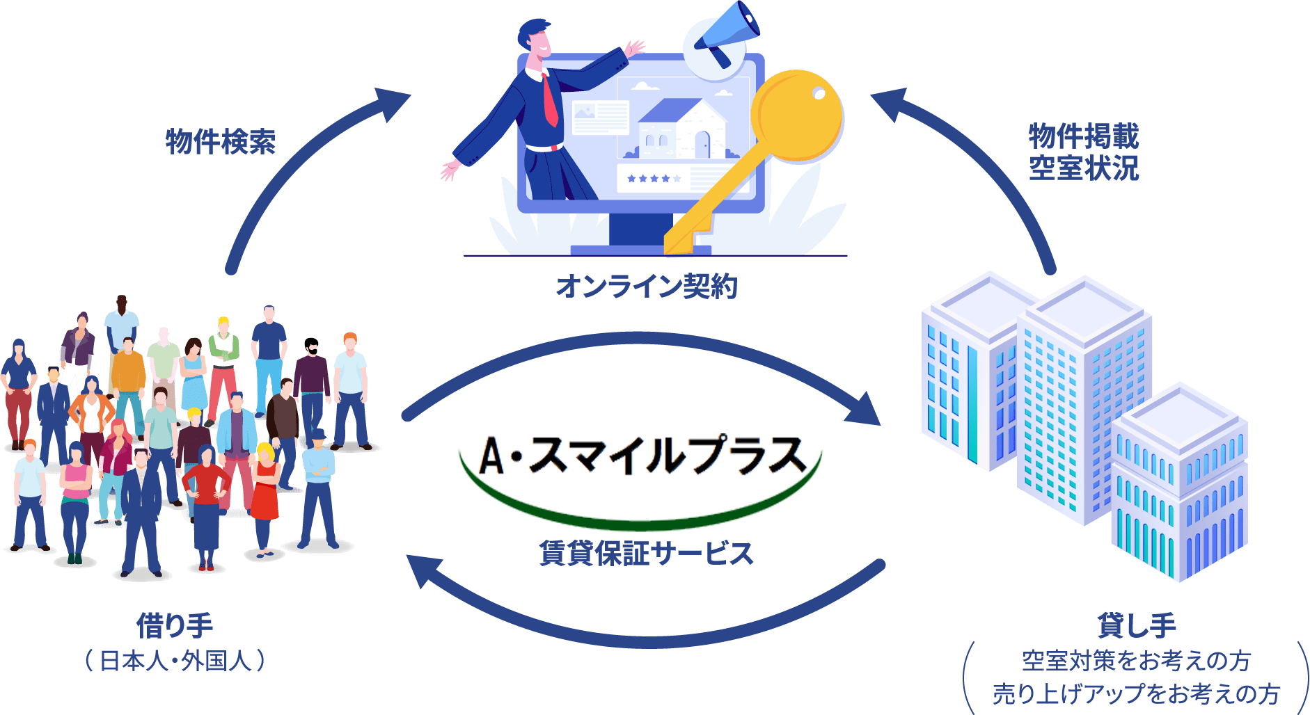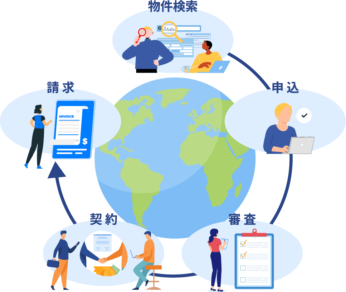 募集から保証審査・契約までのプロセスをオンラインで自動化し、空室問題の解決を目指します。