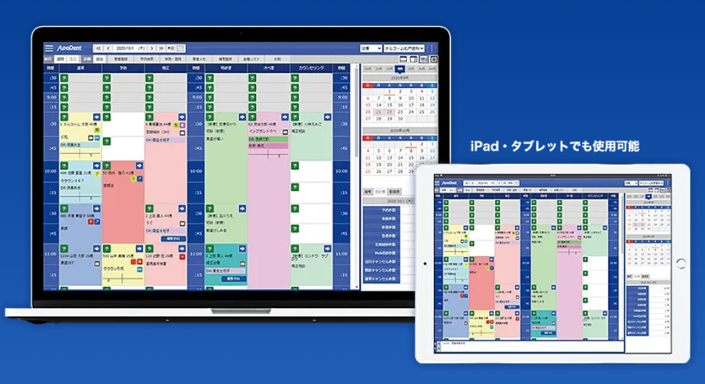 ApoDent (アポデント)は、歯科医院の予約管理を効率化するクラウド型システムです。リアルタイムでの情報共有、キャンセルの減少、患者のフォローアップ、業務効率の向上など、歯科医院の経営をサポートする多様な機能を提供します。患者様用アプリ「デンタルパス」が誕生し、診察券として受付でチェックインできる機能や、リマインド情報を確実にお届けする機能などが搭載されています。