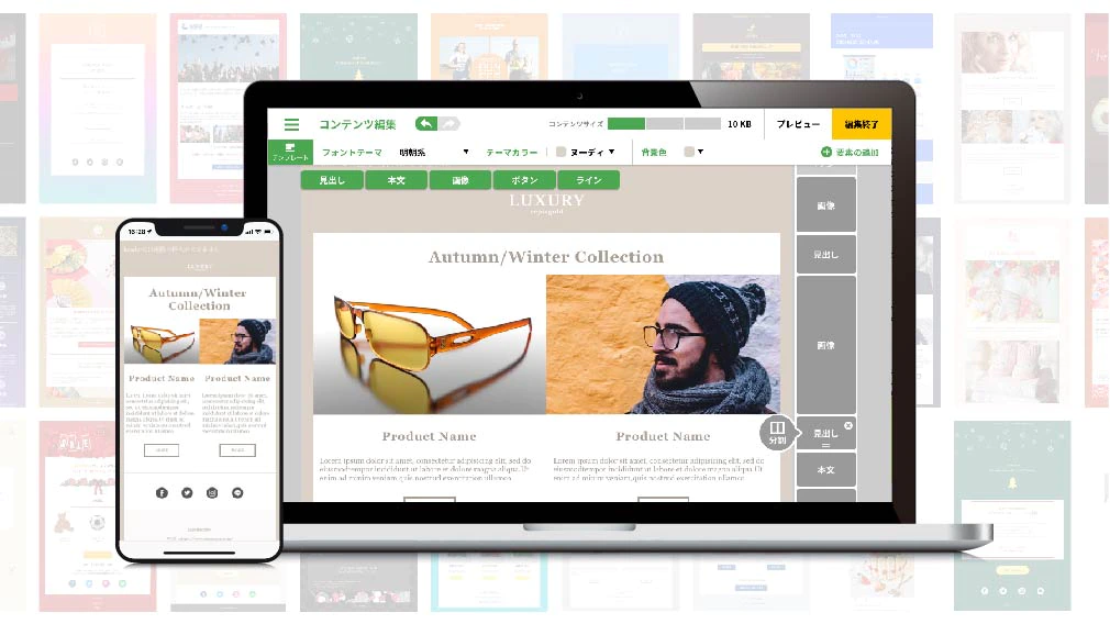 豊富なテンプレートと操作で初めてでも簡単にHTMLメールを作成