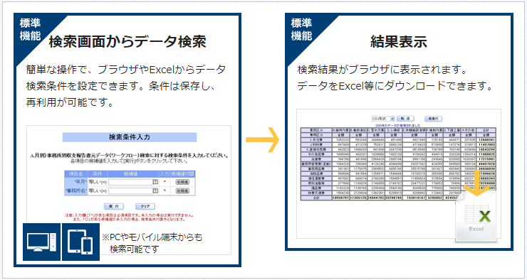 複数システムからデータを手作業で集めるなどの非効率を解消。自由なデータ検索・活用を実現し、業務のあり方を根本的に改善。デジタルトランスフォーメーション(DX)を強力に推進します。