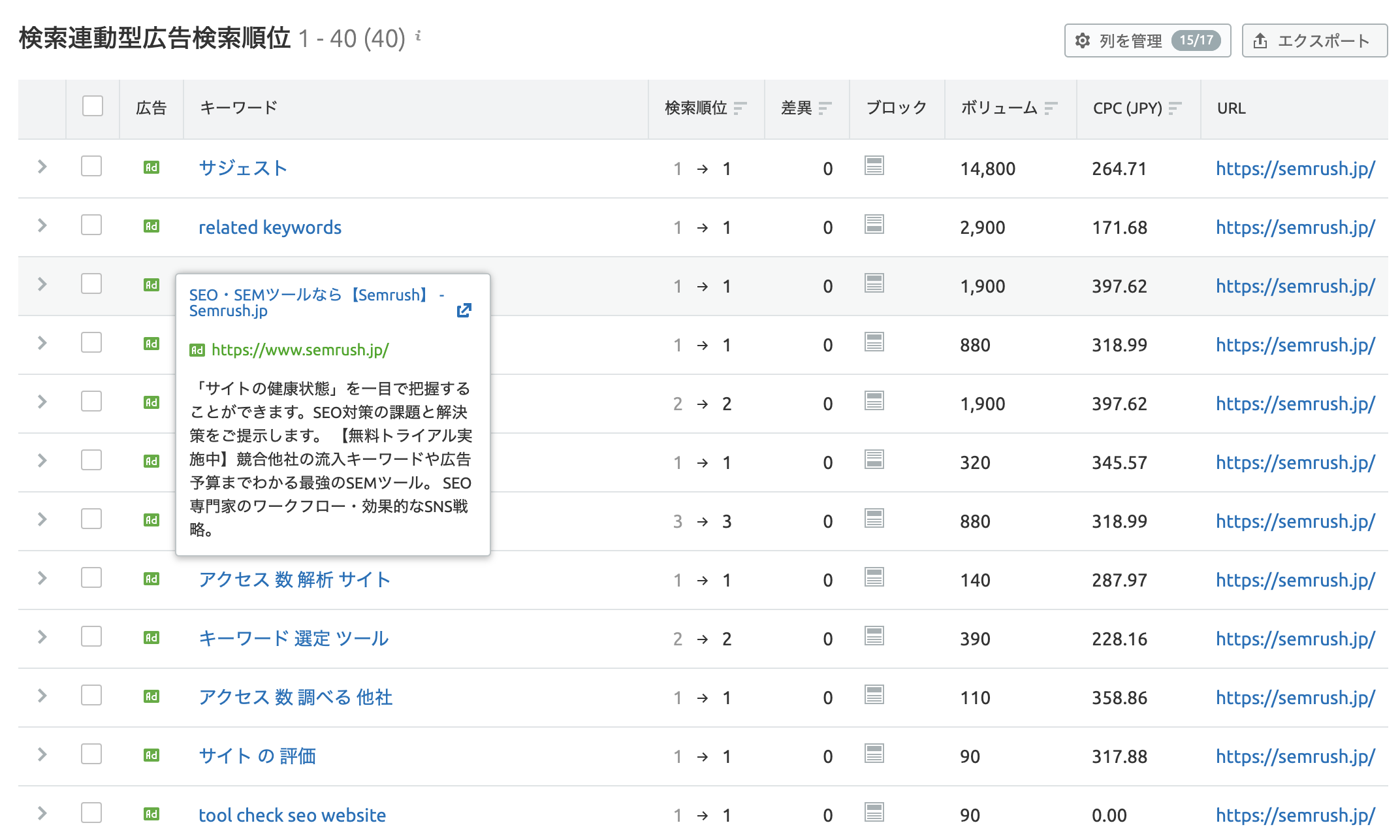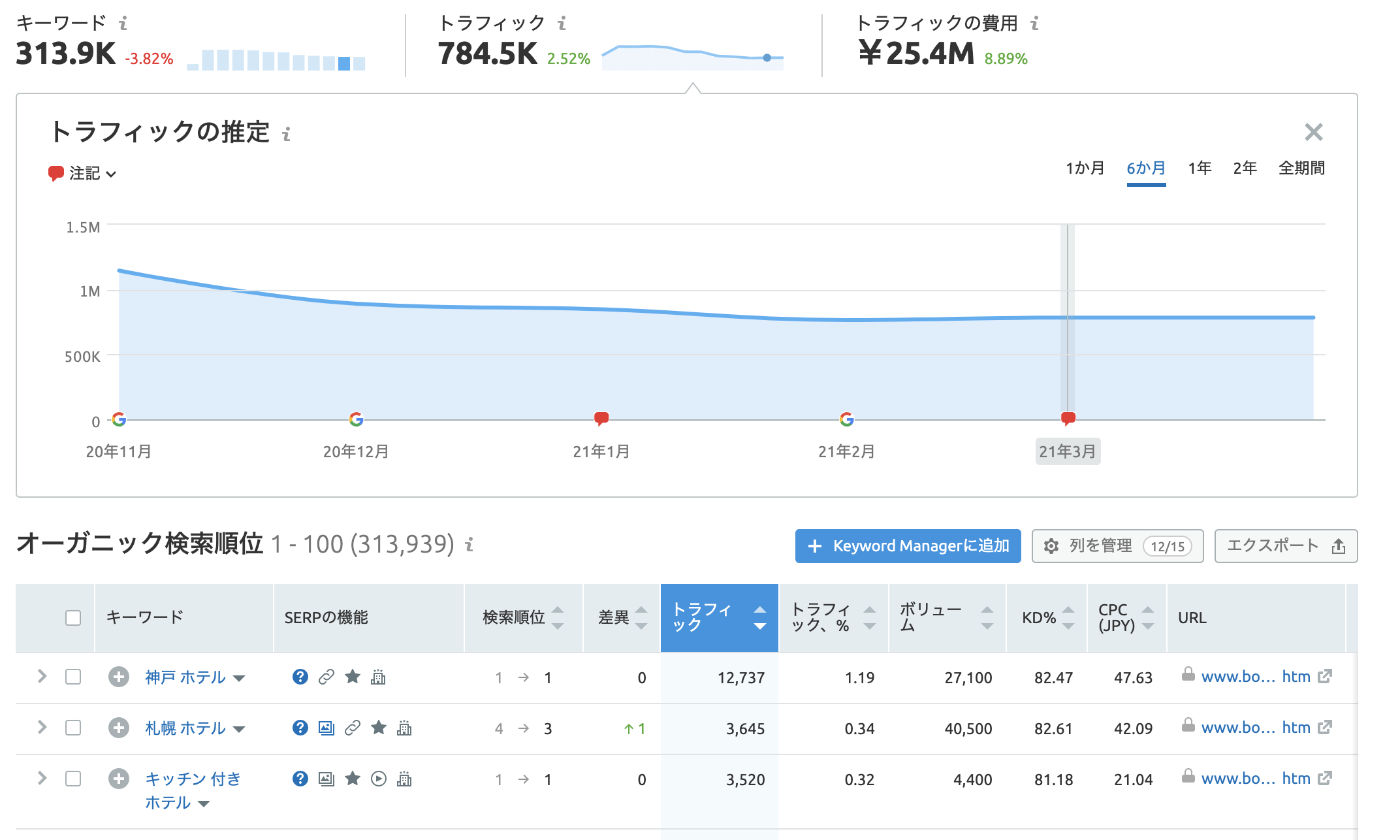 競合サイトの調査・分析、順位変動のトラッキングなどを一元化し、オンラインのトラフィック改善を支援します。