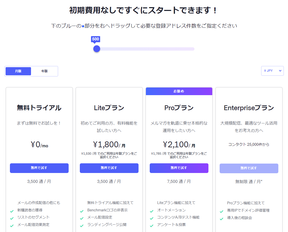 HTMLメール配信が無料で毎月3,500通まで可能。高機能メール配信システムなら「Benchmark
