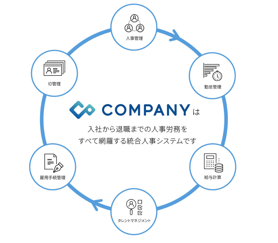 COMPANYシリーズは、人事給与業務に関連する人事情報の収集、履歴管理と可視化を一気通貫で提供します。大手企業特有の複雑な組織体系や異動ワークフローをサポートする機能で人事業務の高度化を支援。給与計算から従業員ワークフロー、行政手続までを幅広くサポート。