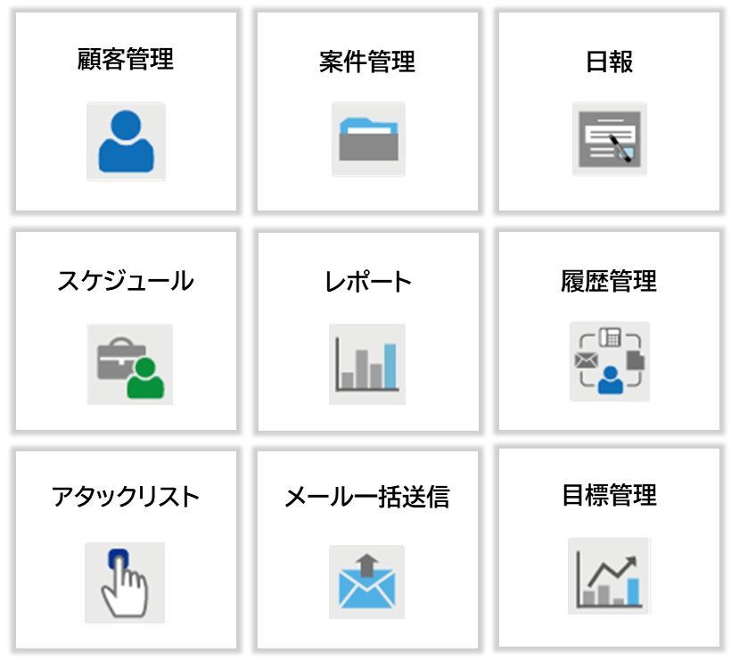 顧客・日報・案件管理などの各種機能により、営業活動の可視化や属人化の防止を飛躍的に実現します。
