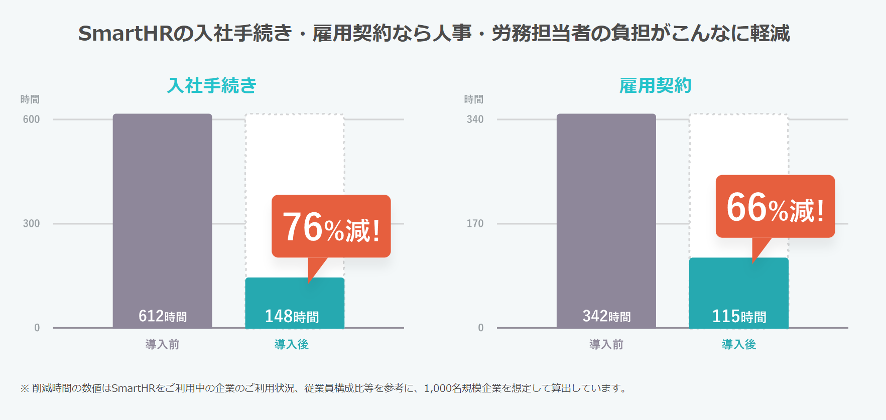 SmartHRは、各種申請や手続きをオンラインで完結し、ペーパーレス化を実現します。これにより、事務作業の効率が大幅に向上し、時間とコストの削減が可能です。