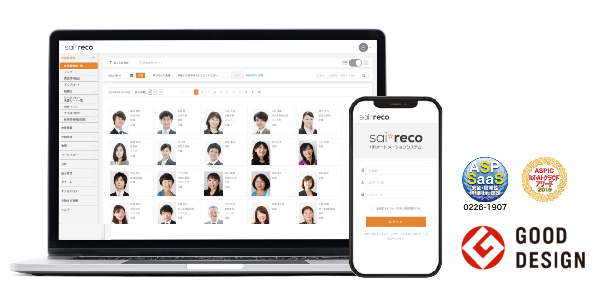 サイレコは、組織人事情報を一元管理し、定型業務を自動化・効率化するHRオートメーションシステムです。タレントマネジメント機能も搭載し、人事施策を直感的に可視化できます。セキュリティ対策も万全で、AWSを利用した高い安全性を誇ります。PCやスマホからアクセス可能で、テレワークにも対応しています。