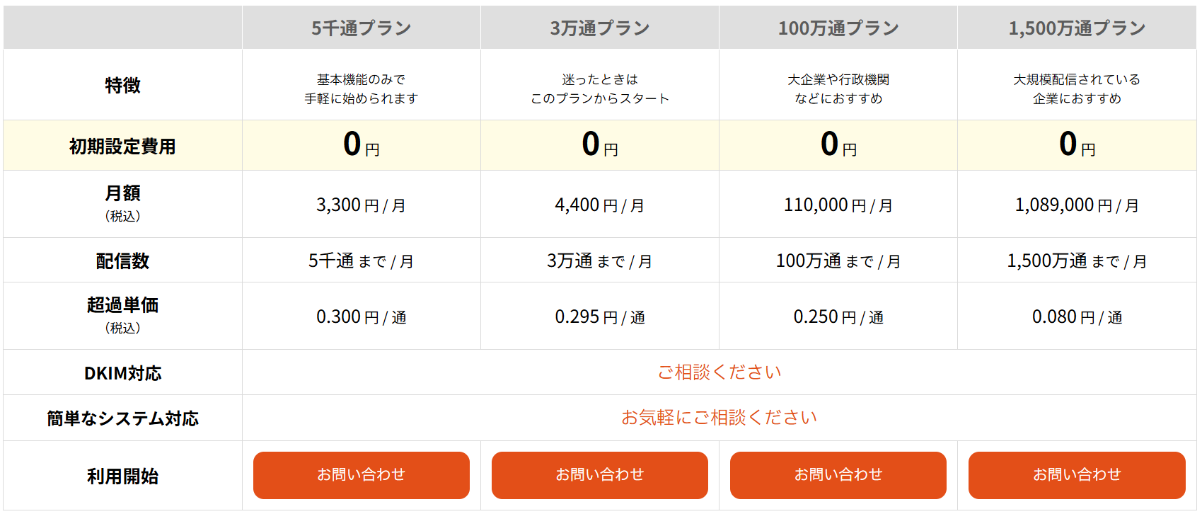 自社開発のコンビーズメールだから、 業界最安価格帯で安心してお使いいただいております。