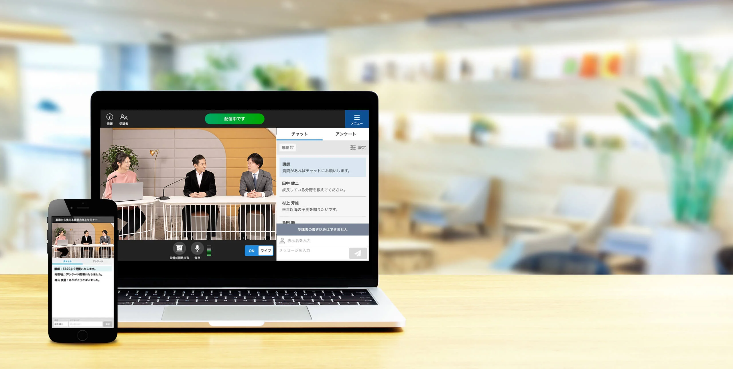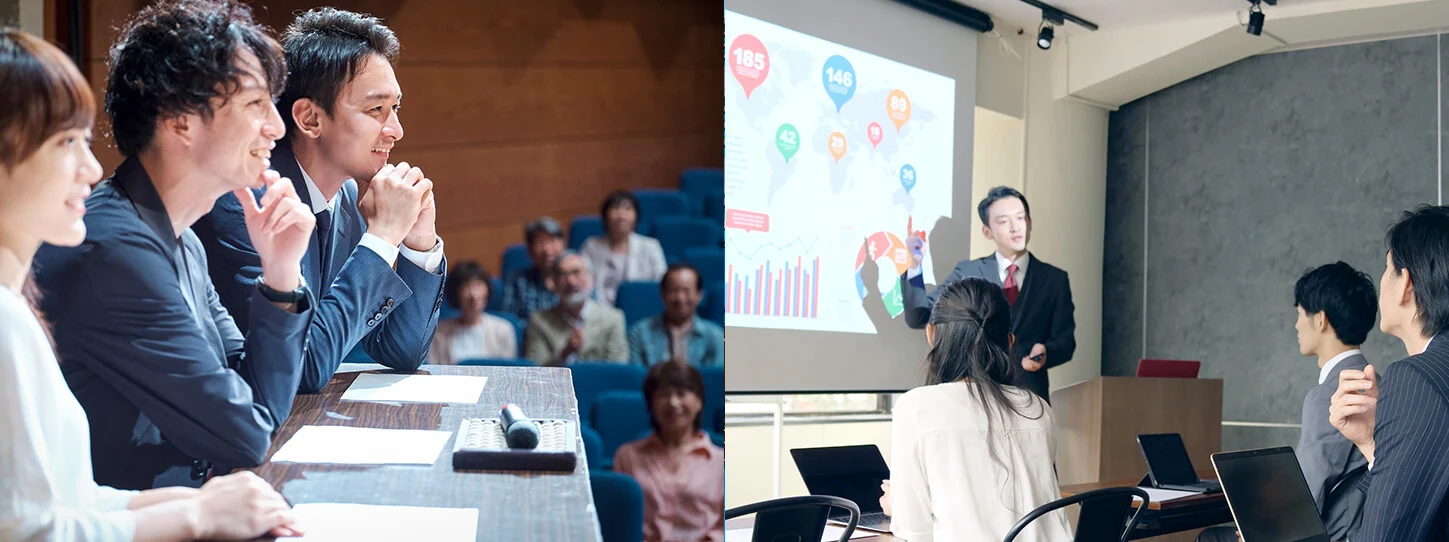 V-CUBE セミナーは、年間3,000イベント以上の配信実績を持つプロフェッショナルがサポートし、スライドや台本の作成からテクニカルな配信まで対応。簡単にウェビナーを開催し、参加者とスムーズにコミュニケーションを取ることができます。