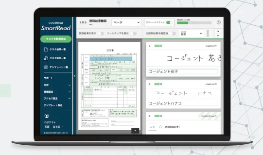 SmartReadは、次世代AIを用いた高精度なOCR(光学文字認識)サービスで、手書き文字やノイズ、歪みのある文書でも正確に読み取ります。様々な文書から必要な情報を自動抽出し、データ化することが可能です。APIやRPAとの連携により、業務システムへのデータ入力や自動化が実現し、文書処理の効率化が大幅に向上します。主に、定型・非定型文書の仕分けや読み取りに優れており、帳票、契約書、注文書など幅広く対応します。