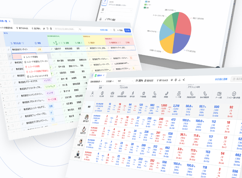 SALESCOREは、営業チームの目標達成を支援するセールスイネーブルメントSaaSです。SFAとの連携により、営業データの収集と分析を自動化し、各KPIの進捗をリアルタイムでダッシュボードに表示します。これにより、営業活動の改善ポイントが一目でわかり、質の高いPDCAサイクルを実現します。エクセルライクなUIを採用しており、使い慣れた操作で簡単にデータ入力が可能です。特に営業経験の豊富なサポートメンバーが実際の運用支援を行うため、現場の活用を最大限に促進します。