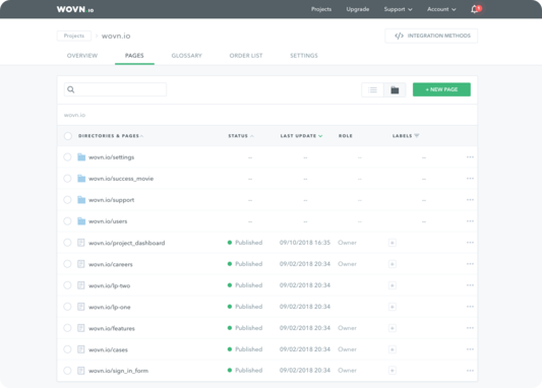 WOVN.ioは、既存のWebサイトに一行のコードを挿入するだけで多言語化が開始できる簡単なセットアップを提供します。翻訳作業はすべてダッシュボード上で管理でき、複数の翻訳手法を組み合わせることで、最適な翻訳を実現できます。企業が手軽にグローバル展開を進めるためのソリューションとして、多言語SEOにも対応しています。