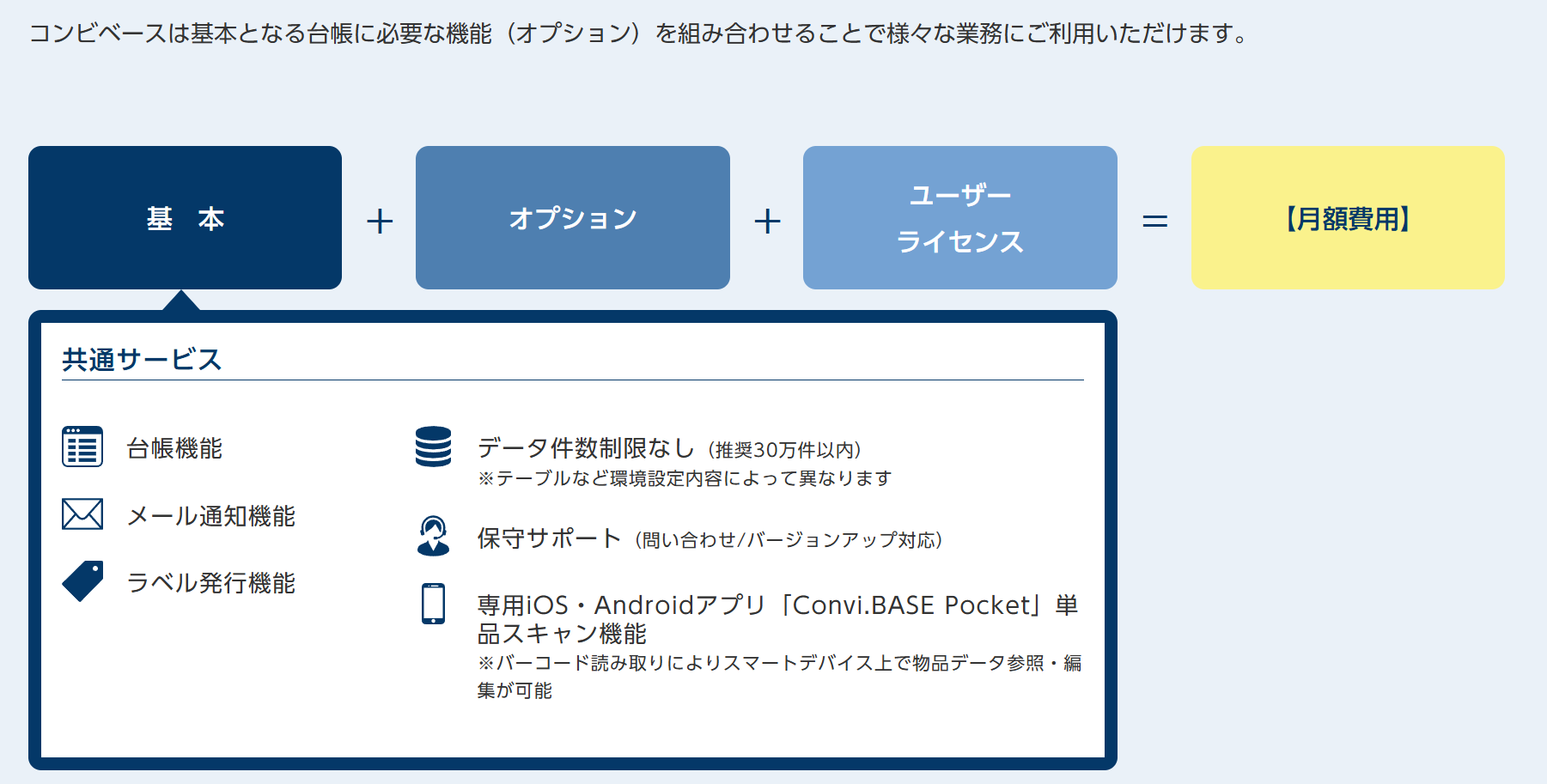 Convi.BASEは、固定資産、IT資産、重要文書、工具、在庫など多種多様な物品管理に対応したクラウド型システムです。バーコードやICタグを活用した棚卸しや貸出管理機能を備え、業務効率を大幅に向上させます。導入実績1,100社を超え、多くの企業で活用されています。さらに、設備や制服、厨房機器など幅広い分野で利用可能で、企業の物品管理をトータルでサポートします。セキュリティ面も強化され、安心して使用できます。