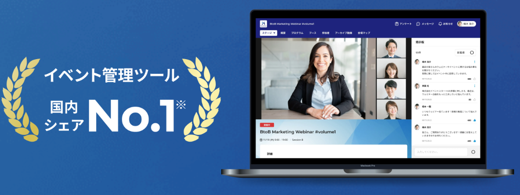 イベントマーケティングプラットフォーム。オンライン・オフライン対応、MA/SFA連携機能付き。