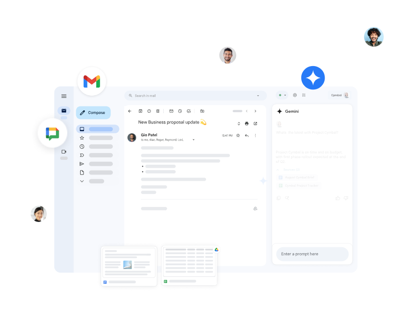 Google Workspaceは、メールやスケジュール管理、ファイル共有、オンライン会議まで、幅広い業務ニーズに対応するオールインワンプラットフォームです。AIのサポートにより、業務の効率化やチームでの協力を円滑に進めることが可能です。リモートワークでも安全でスムーズな環境を提供します。