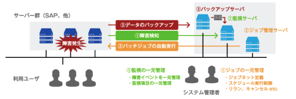 クラウド型運用管理サービス。統合監視、ジョブ管理、バックアップ機能を提供。