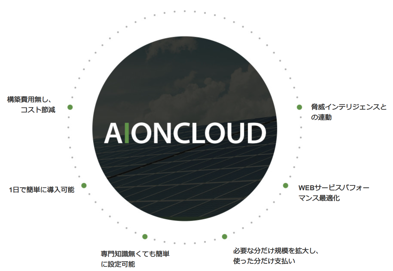 「AIONCLOUD」は、クラウド上で多層的なセキュリティを提供するプラットフォームです。WAF(Webアプリケーションファイアウォール)により、Web攻撃や脆弱性を防御し、WMS(Website Malware Scanner)が悪性コードを検知。クラウド環境のメリットを活かして、どこからでも安全な運用をサポートします。