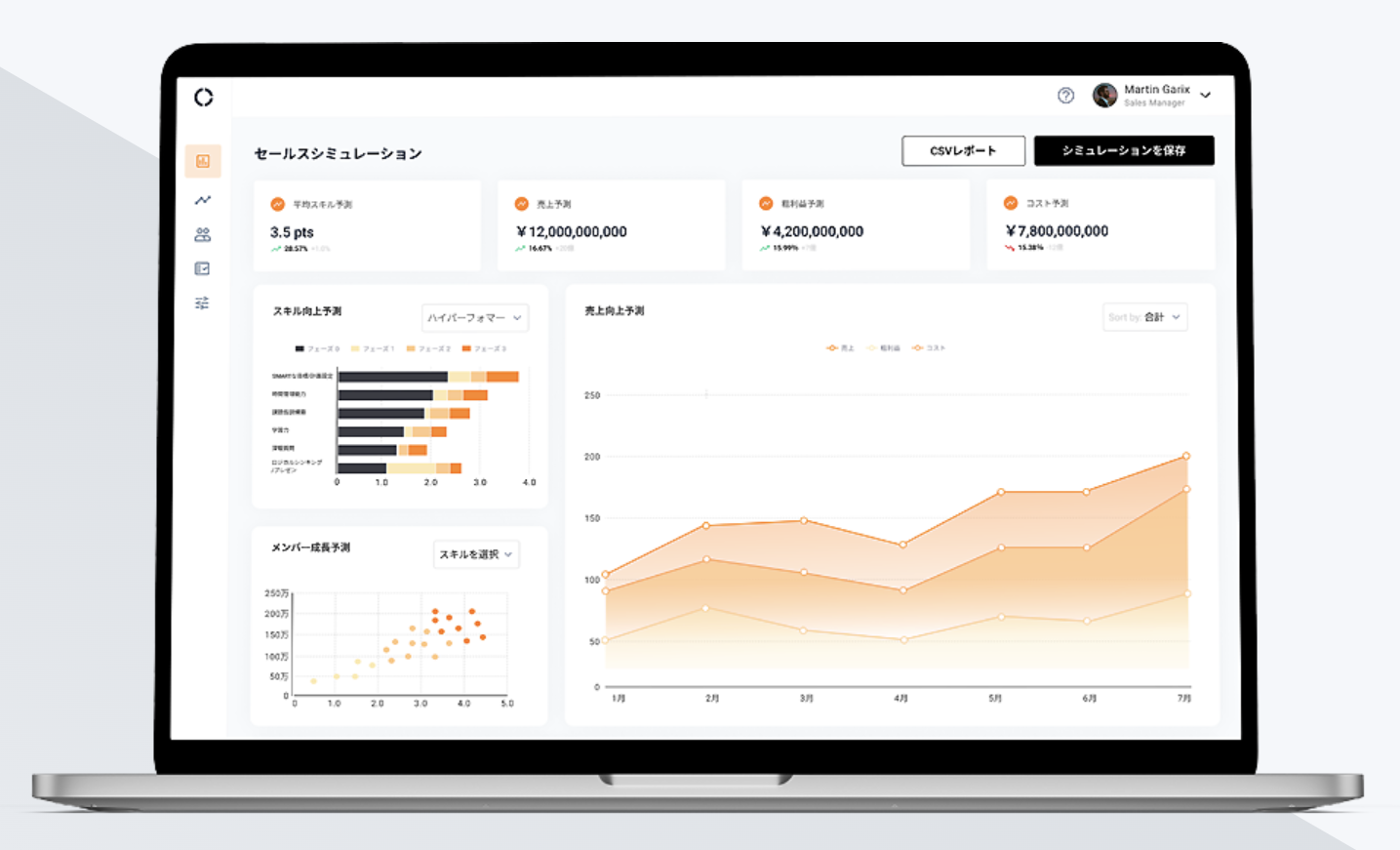 営業成果と育成施策のデータを連携し、相関分析を可能にします。これにより、育成の投資対効果を可視化し、戦略的な意思決定を支援。BPOサービスとも連携し、現場に即したトレーニングやコーチングで具体的な成果創出を目指します。