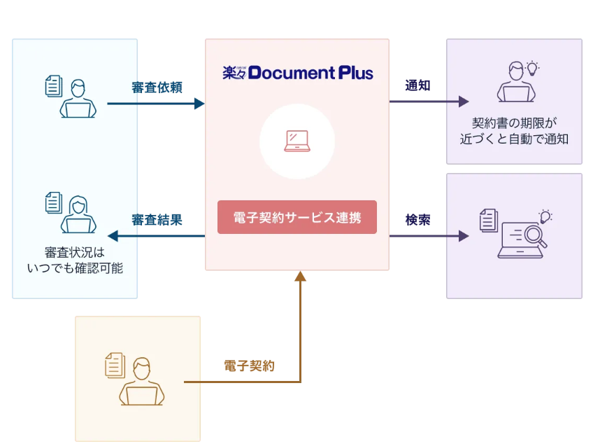 楽々Document Plusは、契約書管理やISO文書管理など、多種多様なドキュメントや業務に対応可能です。紙文書やフォーマットの異なるドキュメントも一元管理でき、ドキュメント業務のムダを解消します。