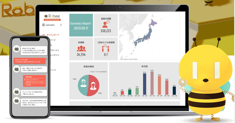 Robeeは新規ユーザーの獲得効率を最大化するためのデータ分析プラットフォームです。LPOやポップアップバナー、チャットボットのシナリオを設計し、データ取得・分析から施策の実行、LTV最大化まで一貫したソリューションを提供します。