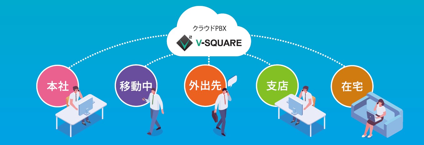 V-SQUAREは、PBXや電話回線などの設備を社内に置かずに電話を利用できるクラウドPBXマネージドサービスです。スマホ専用アプリで、いつでもどこでも会社の電話番号で発着信が可能です。毎月の登録ID数で月額課金により無駄な利用料金が発生せず、内線番号の設定変更が月額費用に含まれますのでや運用コストや負荷を削減できます。