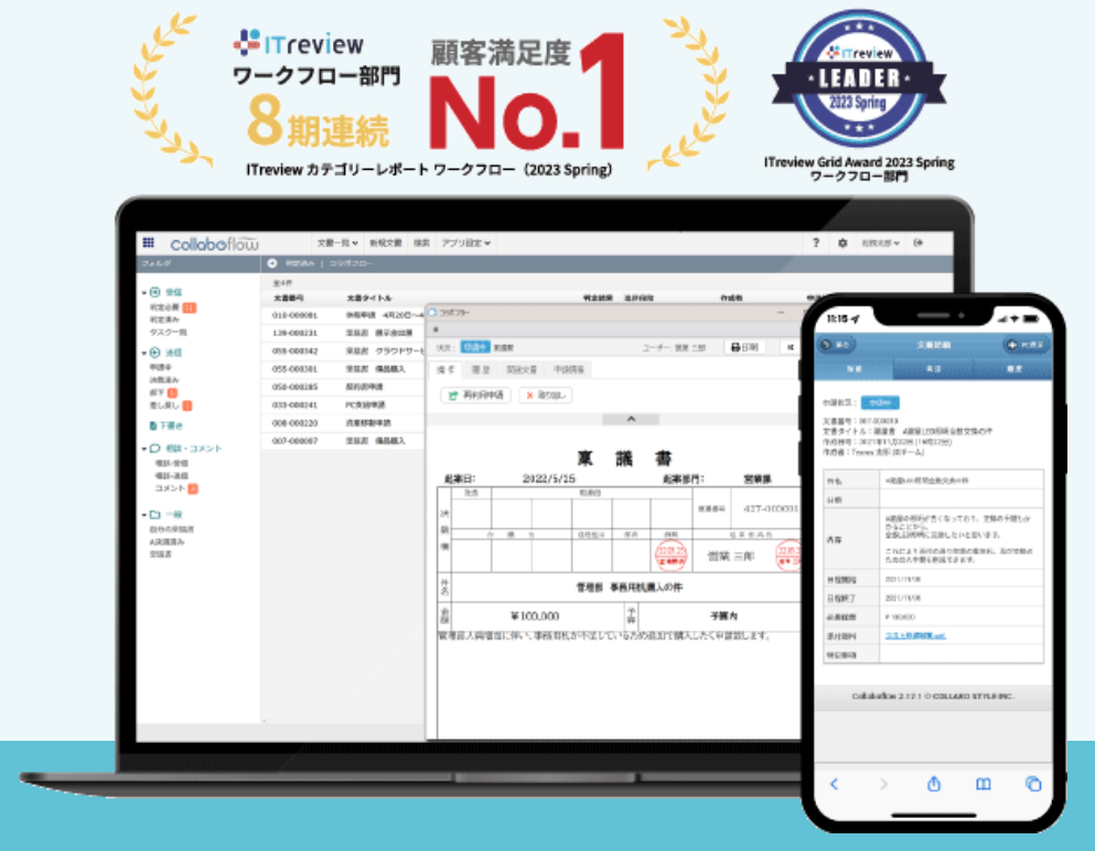 コラボフローは、直感的な操作性を持つワークフローツールです。Excelを使用して申請フォームをデザインし、ワンクリックで電子化可能。承認経路の設定も簡単で、APIや他サービスとの連携機能も充実しています。テレワークやペーパーレス化を進める企業に最適で、導入が簡単で運用も容易です。