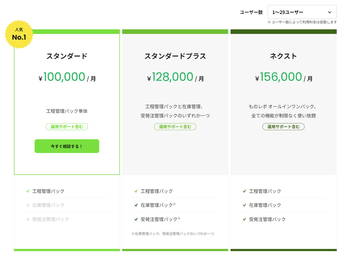 スタンダードプラン: ¥100,000/月、スタンダードプラス: ¥128,000/月、ネクスト: ¥156,000/月。初期費用は一切かかりません。