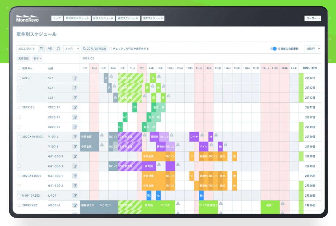 「少量多品種」×「短納期」の製造業に特化したクラウドアプリケーション。工程管理、在庫管理、受発注管理など、製造業の現場をDXで飛躍的に効率化します。ワンタッチでかんたん操作が可能で、製造業出身のサポートチームが導入から運用までトータルサポート。