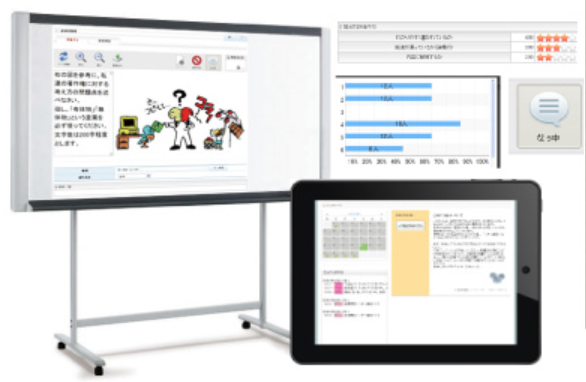 レクチャーエイド2は、タブレット端末を活用した総合的な学習支援システム(LMS)で、一斉授業での学習者の反応収集、反転学習での教材配布、自己学習のためのドリル、学習者間の観点別・記述式相互評価、課題の添削、グループ討議の自動グループ分け、電子授業シナリオ作成など、学習の場面で必要な14のサブ機能を備えています。