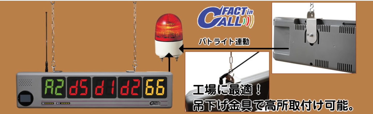 FACT IN CALLは、工場や店舗、病院などさまざまな環境で活躍するコードレス呼び出しシステムです。コードレス設計により、配線の手間を省き設置が容易。操作性もシンプルで、直感的に利用できます。