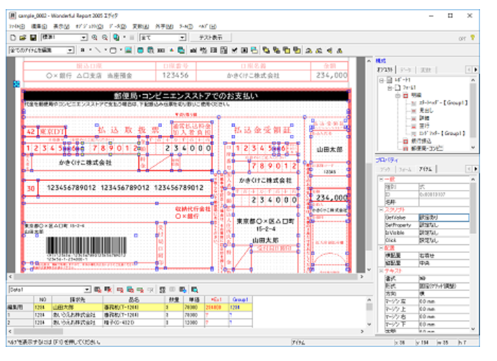 Wonderful Report 2025は、マウス操作とプロパティ設定を中心とした直感的な操作で、帳票書式(定義ファイル)の作成が可能です。これにより、ユーザーは効率的に帳票デザインを行えます。